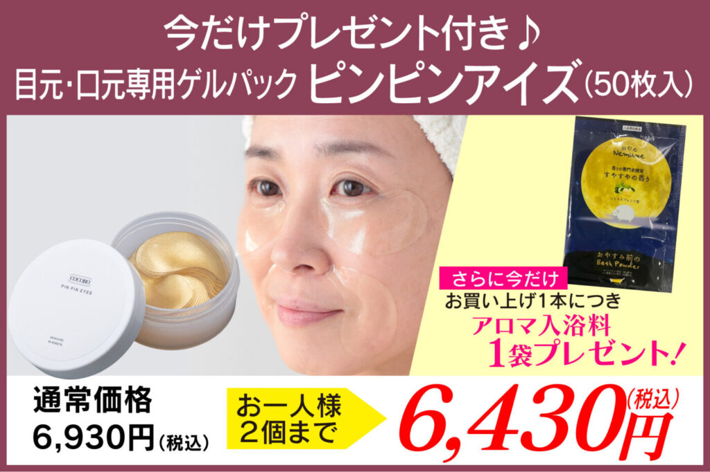 そして、COCOROのスキンケア製品で、もう一つオススメなのが、「目元」も「口元」もピンポイントに潤いケアできる、部分美容ゲルパック「ピンピンアイズ」です。