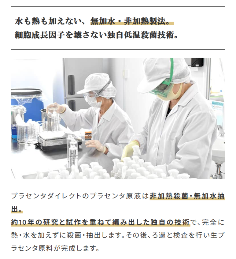 プラセンタダイレクトは、北海道産サラブレッド由来の生プラセンタ原液美容液です。